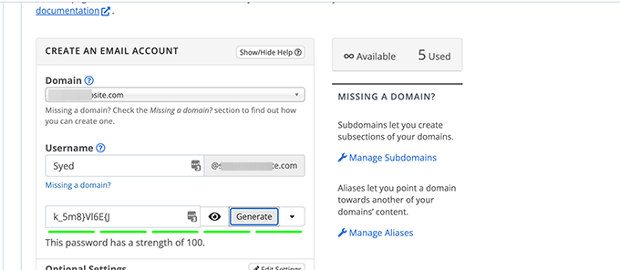 You also need to enter a password for your email account. You can click on the ‘Generate’ button to create a unique, strong password automatically.