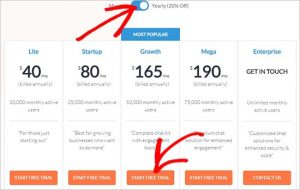 This will take you to the plans and pricing page. You’ll find multiple plans here. Select the Yearly plan and click on the ‘Start Free Trial’ button below any plan that you want to purchase.