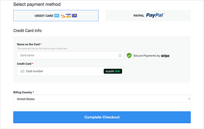 Finally, click on the ‘Complete Checkout’ button to successfully purchase the MonsterInsights Pro and the UserFeedback Plus plugins.