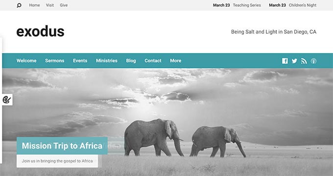 Exodus to piękny motyw WordPress dla kościołów. Posiada potężną sekcję zarządzania kazaniami. Możesz przesyłać kazania w wielu formatach, takich jak wideo, audio, tekst itp.