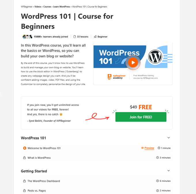 WPBeginner’s primary goal is to help users master WordPress and close the knowledge gap. A secondary goal is to grow our email list, which supports our business growth. To help us meet both these goals, we used MemberPress to create the WPBeginner Videos website.