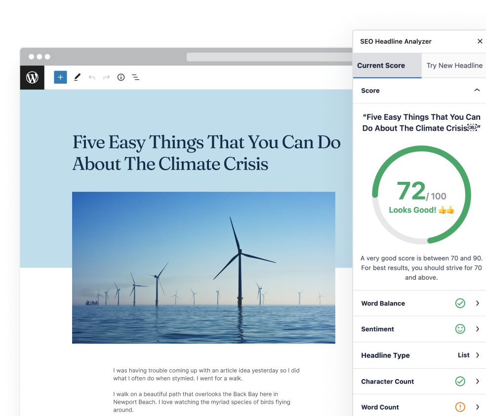 - Get an analysis of how click-worthy your headline is