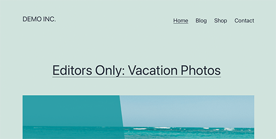 After that, you can visit a private post or page to see it in action. Here’s how it looked on our test site: