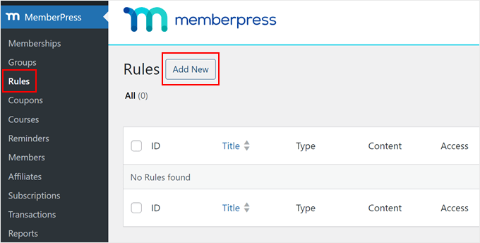 To create a membership plan, go to MemberPress » Memberships. Then, click ‘Add New.’